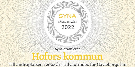I årets upplaga av Bästa Tillväxt, som utses av kreditupplysningsföretaget Syna, toppar Hofors i Gävleborgs län. Dessutom i hård konkurrens. På andra ... -